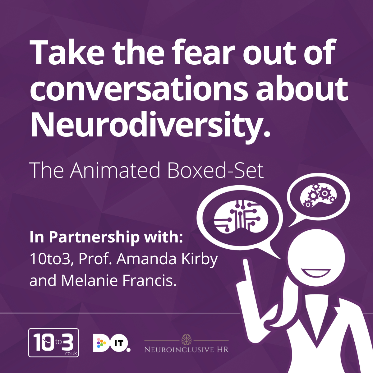 The suite will be a suite of animated 10to3 videos that will help your teams understand what it means to be neurodivergent, and take the fear out of management conversations with a neurodiversity dimension. They will cover a range of topics such as: